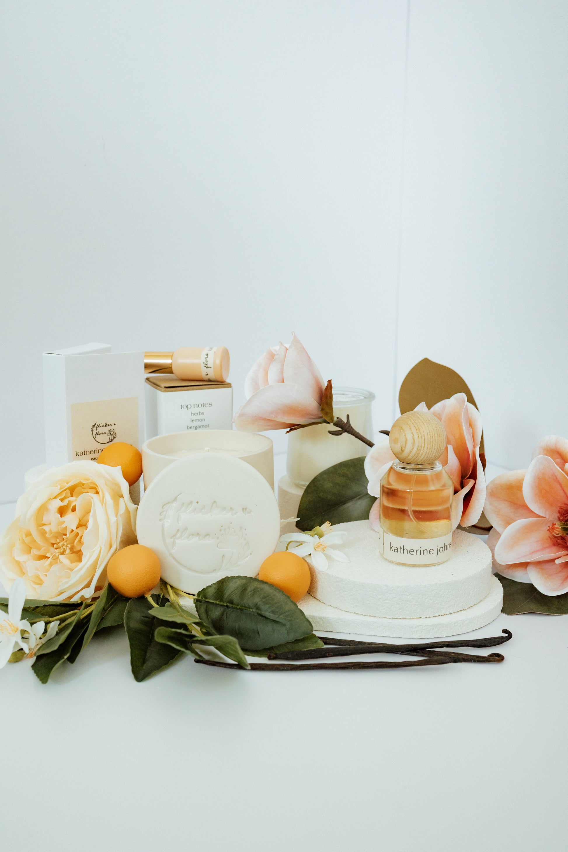 Madagascar and Tahitian vanilla blend in a delicate tulle of orange flower, rose and magnolia petals with a subtle touch of bitter cocoa.